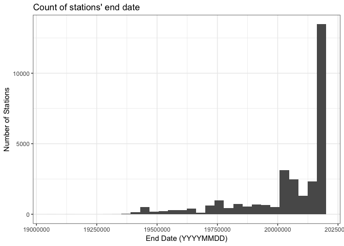 ggtitle("Count of stations' end date") +