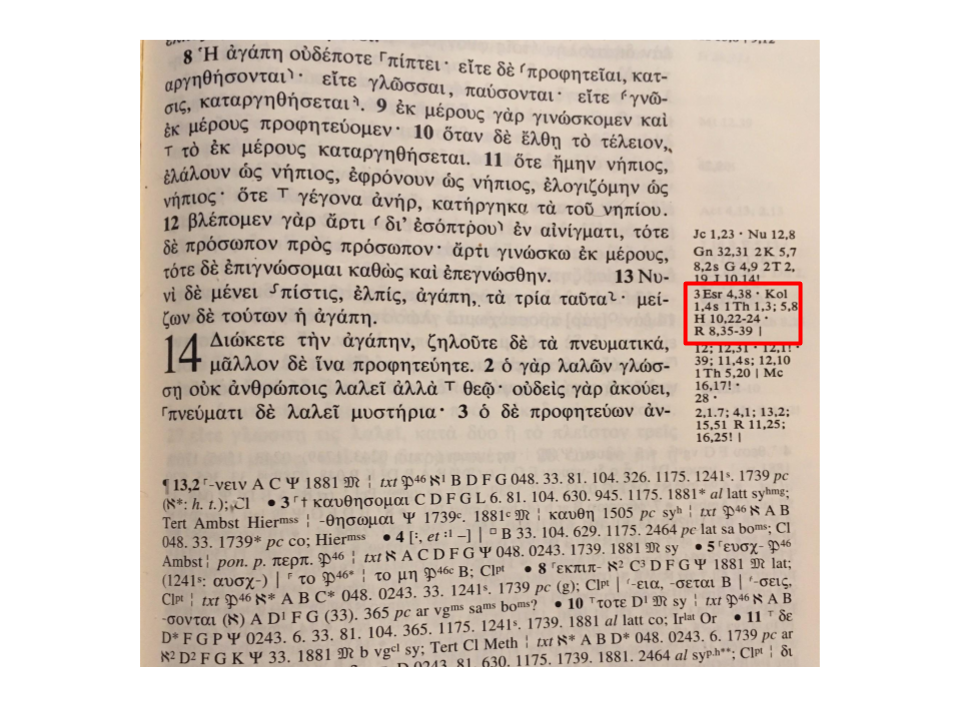 1 Corinithians 13 in Nestle-Aland Novum Testamentum Graece