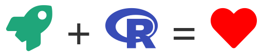`r fa_rocket(colour = "#1FA67A")` + `r fa_r_project(colour = "#384CB7")` = `r fa_heart(colour = "red")`