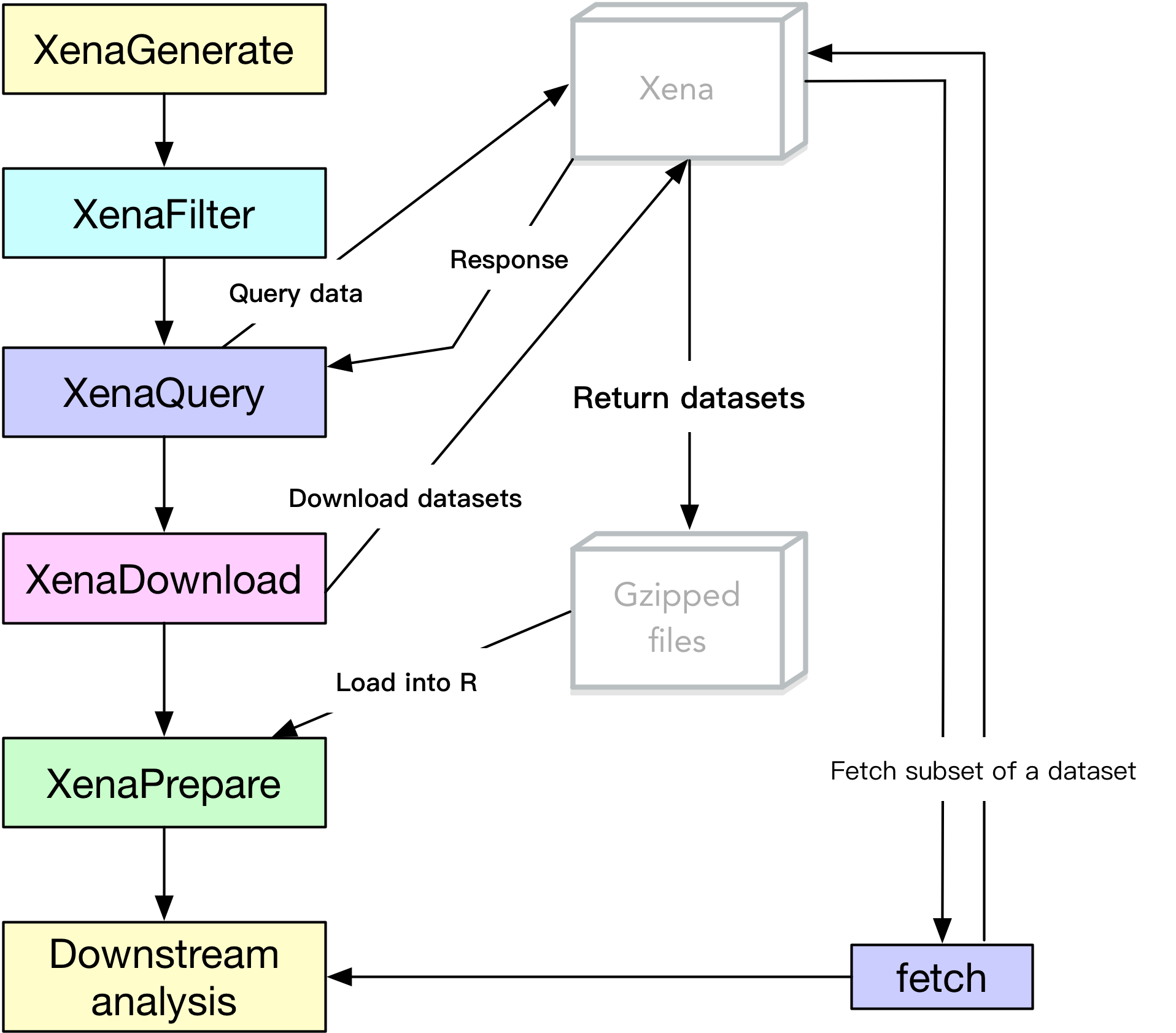 Before actually pulling data, understanding how UCSCXenaTools works (see Figure 1) will help users locate the most important function to use.